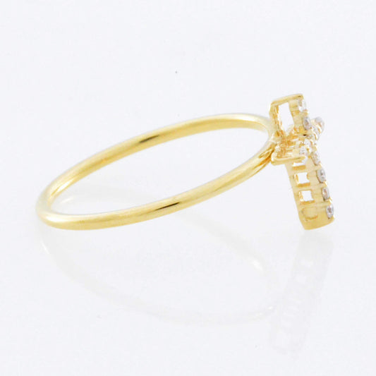 14Kt Gold Genuine Natural Diamond Cross Ring