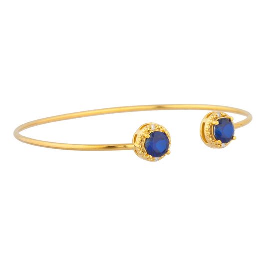 14Kt Gold Blue Sapphire Round Bezel Bangle Bracelet