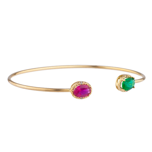 14Kt Gold Created Ruby & Emerald Diamond Oval Bangle Bracelet