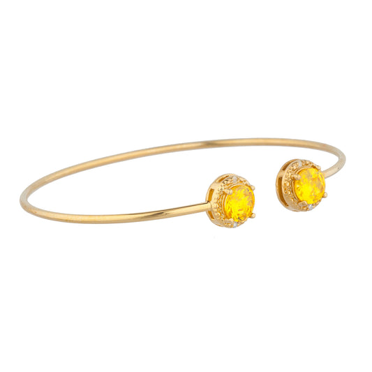 14Kt Gold Yellow Citrine & Diamond Round Bangle Bracelet
