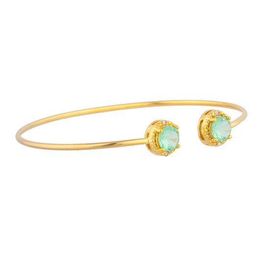 14Kt Gold Green Sapphire & Diamond Round Bangle Bracelet
