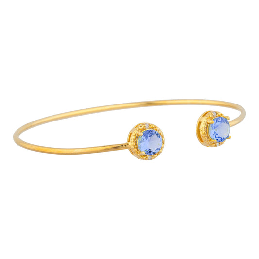 14Kt Gold Tanzanite & Diamond Round Bangle Bracelet