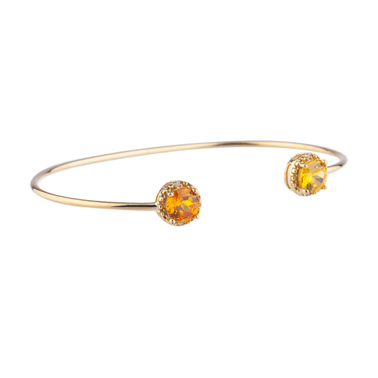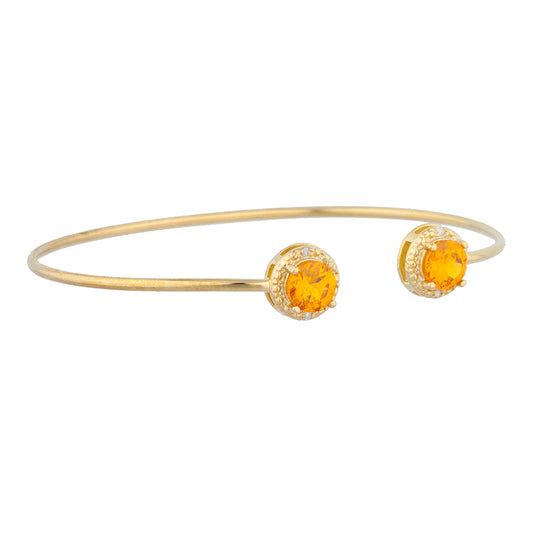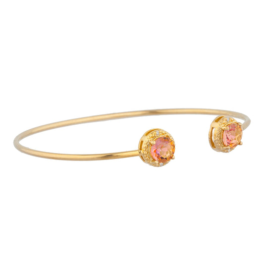 14Kt Gold Orange & Yellow Citrine Diamond Round Bangle Bracelet