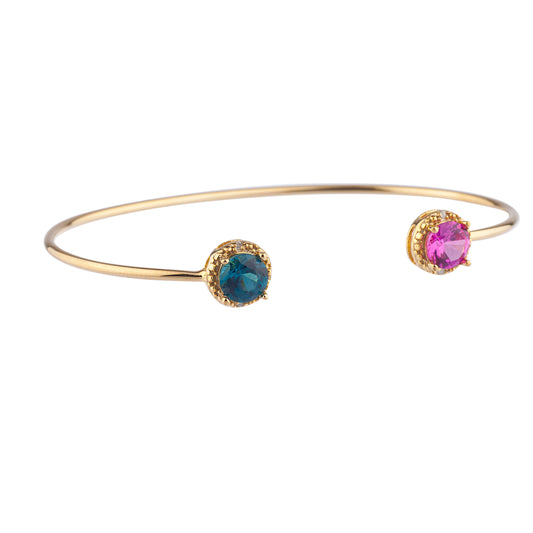 14Kt Gold Pink Sapphire & London Blue Topaz Diamond Round Bangle Bracelet
