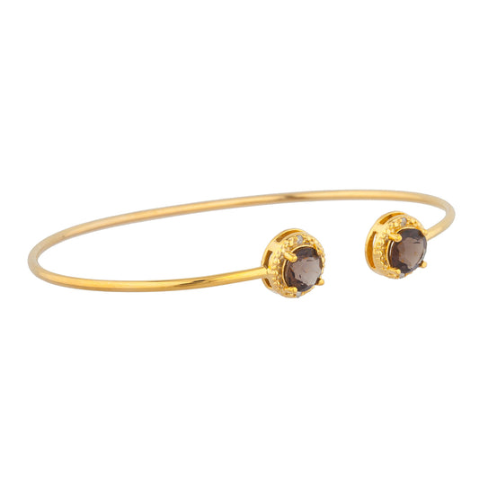 14Kt Gold Genuine Smoky Topaz & Diamond Round Bangle Bracelet