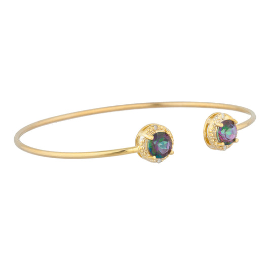 14Kt Gold Natural Mystic Topaz & Diamond Round Bangle Bracelet