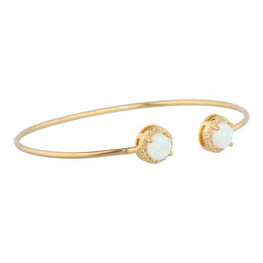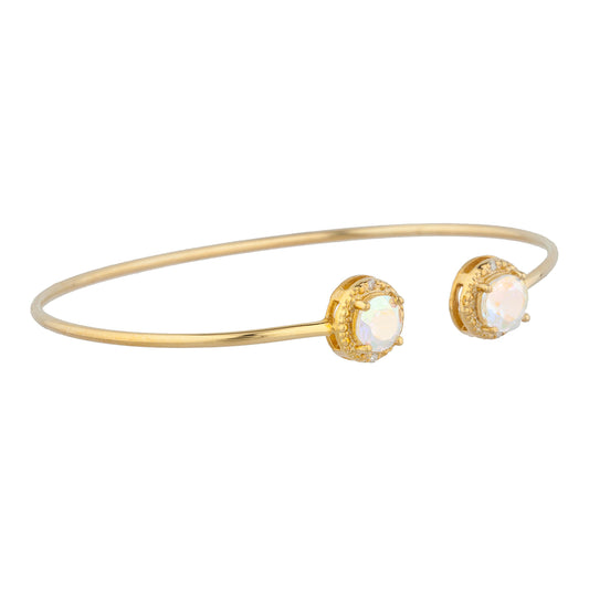 14Kt Gold Opal & Diamond Round Bangle Bracelet