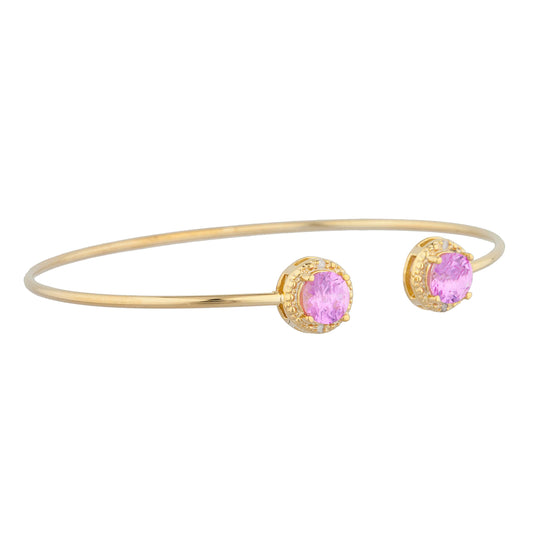 14Kt Gold Pink Sapphire & Diamond Round Bangle Bracelet