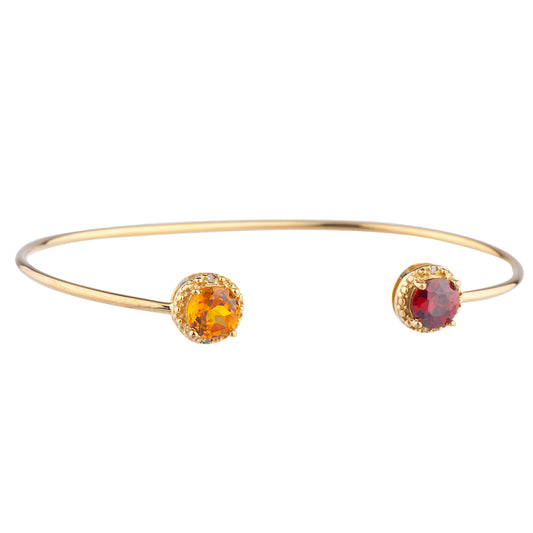 14Kt Gold Garnet & Orange Citrine Diamond Round Bangle Bracelet