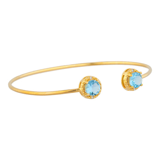 14Kt Gold Blue Topaz & Diamond Round Bangle Bracelet