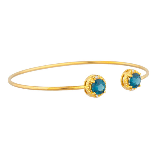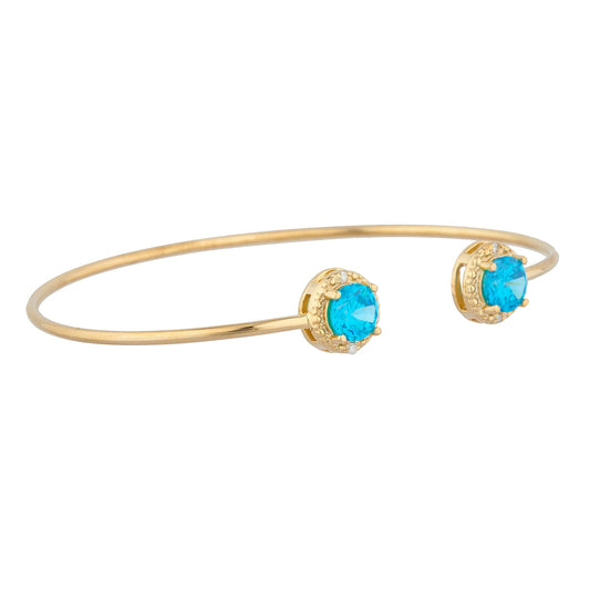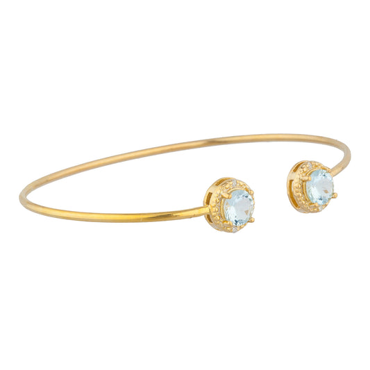 14Kt Gold Aquamarine & Diamond Round Bangle Bracelet