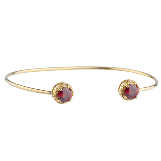 14Kt Gold Garnet & Diamond Round Bangle Bracelet