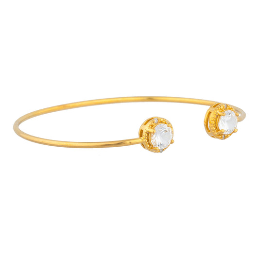 14Kt Gold White Sapphire & Diamond Round Bangle Bracelet