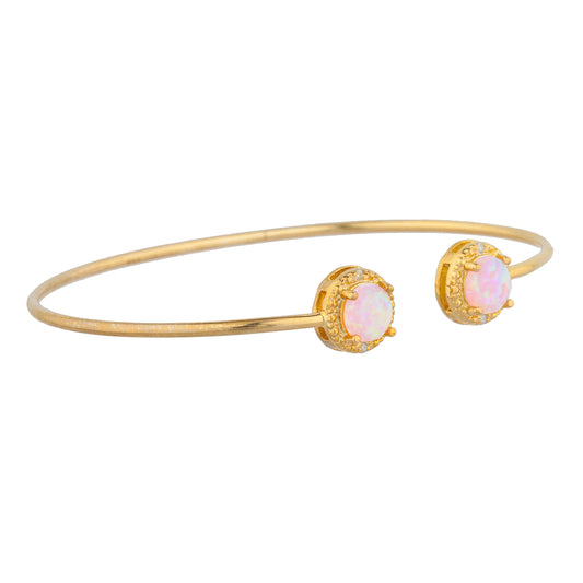 14Kt Gold Pink Opal & Diamond Round Bangle Bracelet