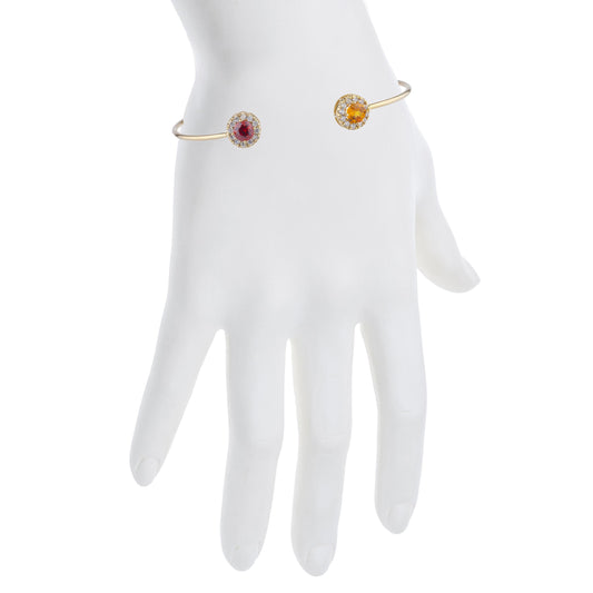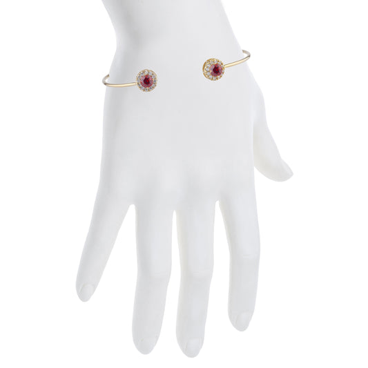 14Kt Gold Created Ruby & Pink Sapphire Halo Design Bangle Bracelet