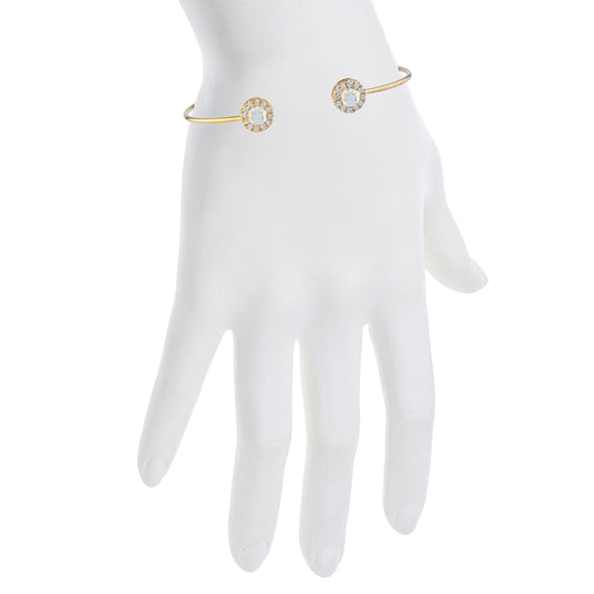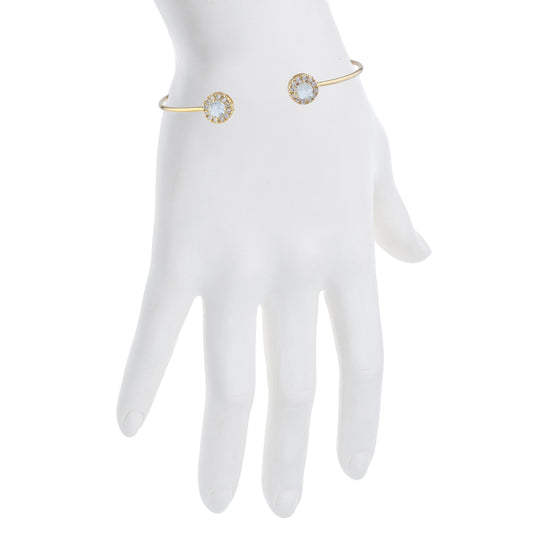 14Kt Gold Aquamarine Halo Design Bangle Bracelet
