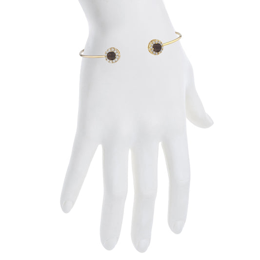14Kt Gold Genuine Smoky Topaz Halo Design Bangle Bracelet
