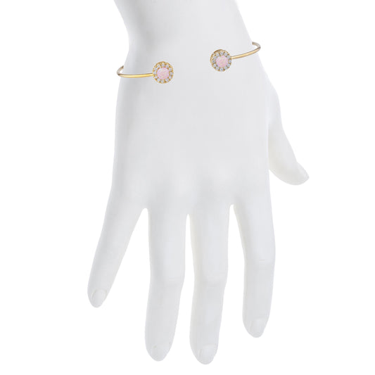 14Kt Gold Pink Opal Halo Design Bangle Bracelet