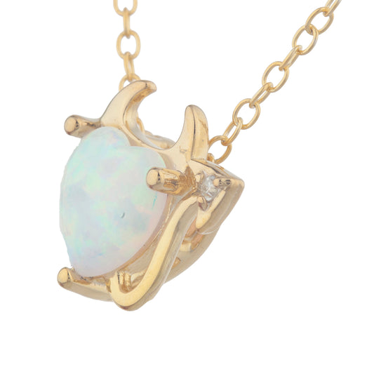 14Kt Gold Opal & Diamond Devil Heart Pendant Necklace