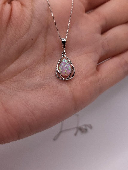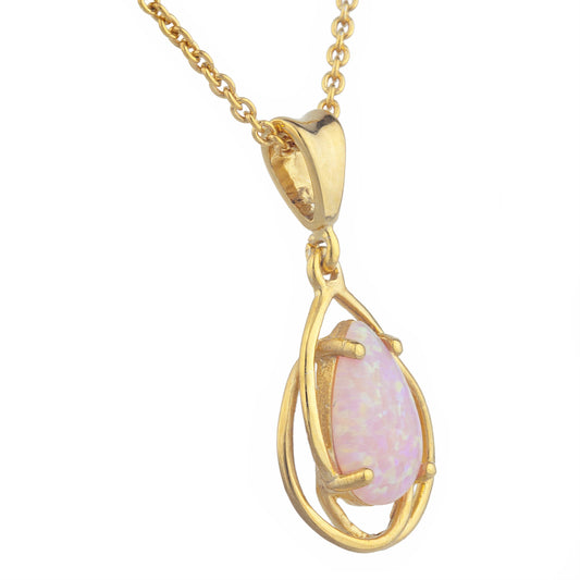 14Kt Gold Pink Opal Pear Teardrop Design Pendant Necklace