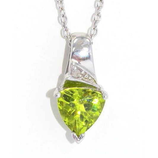 14Kt Gold 1.5 Ct Peridot & Diamond Trillion Pendant Necklace