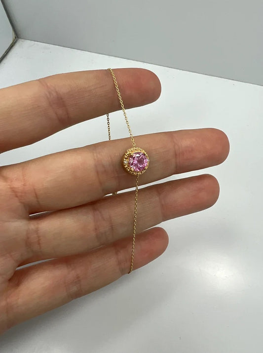 14Kt Gold Pink Sapphire & Diamond Round Bracelet
