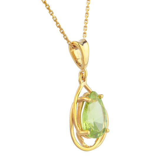 14Kt Gold 2 Ct Peridot Pear Teardrop Design Pendant Necklace