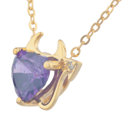 14Kt Gold 1.5 Ct Amethyst & Diamond Devil Heart Pendant Necklace