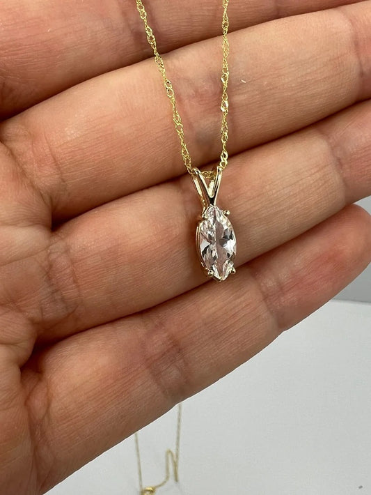 14Kt Gold White Sapphire Marquise Pendant Necklace