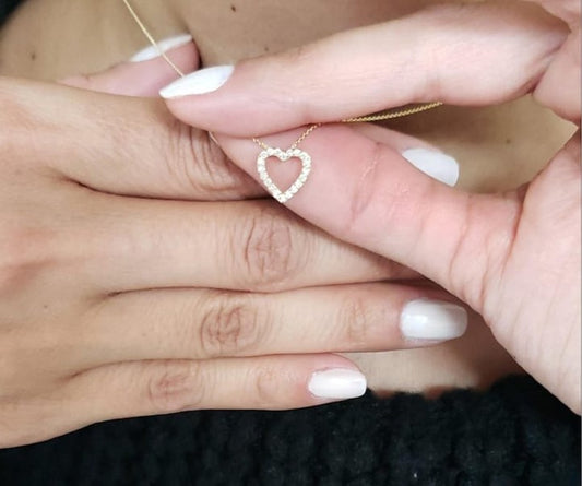 14Kt Gold Lab Grown Open Heart Diamond Pendant Necklace