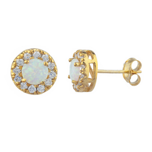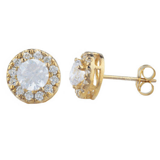 14Kt Gold 1 Ct White Sapphire Halo Design Stud Earrings
