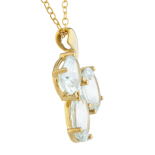 14Kt Yellow Gold Plated Genuine Aquamarine Oval Design Pendant