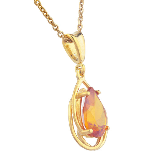 14Kt Gold 2 Ct Orange Citrine Pear Teardrop Design Pendant Necklace