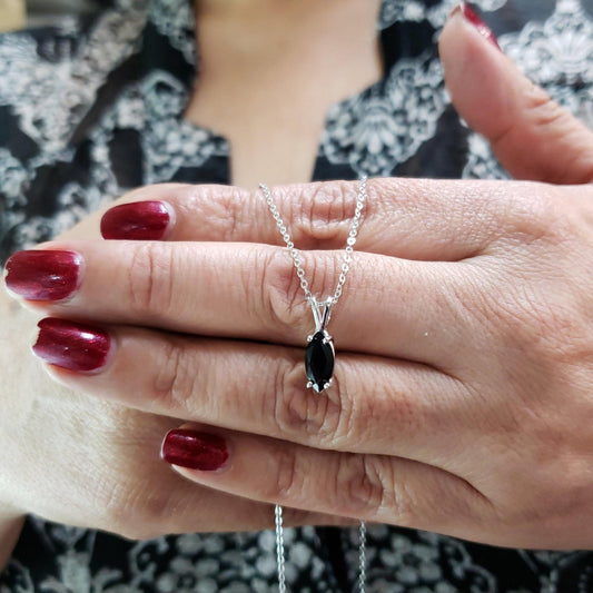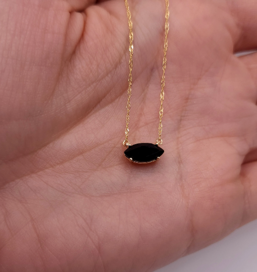 14Kt Gold Black Onyx Marquise Pendant Necklace