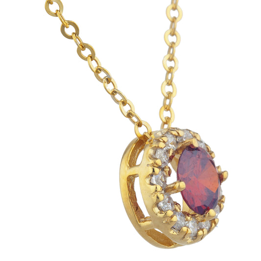14Kt Gold 0.50 Ct Garnet Halo Design Pendant Necklace