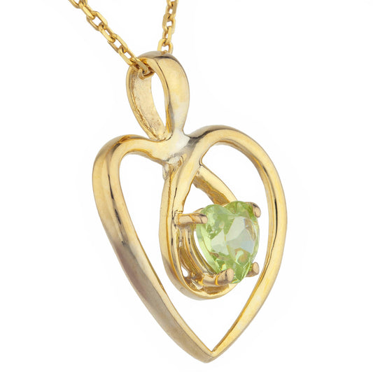14Kt Gold Peridot Heart Design Pendant Necklace