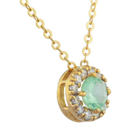 14Kt Gold 0.50 Ct Green Sapphire Halo Design Pendant Necklace