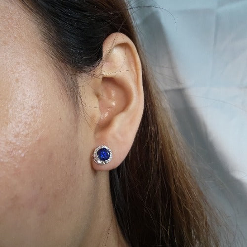 14Kt Gold 1 Ct Blue Sapphire Halo Design Stud Earrings