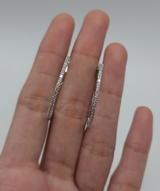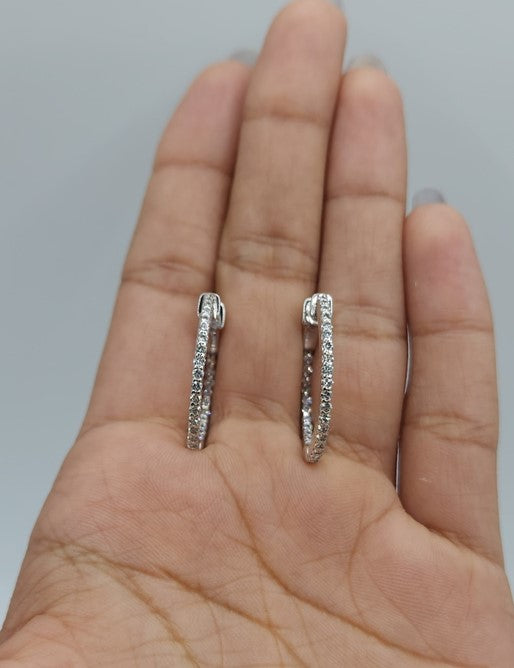 14Kt Gold 2.85 Ct Lab Grown Inside & Outside Diamond Huggie Hoop Earrings
