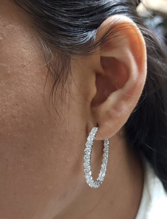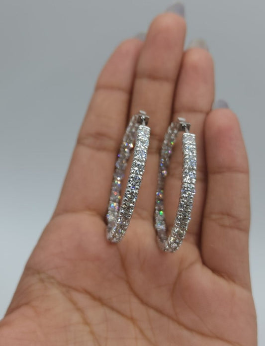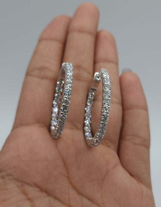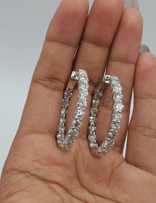 14Kt Gold 6.75 Ct Lab Grown Diamond Inside & Outside Huggie Hoop Earrings