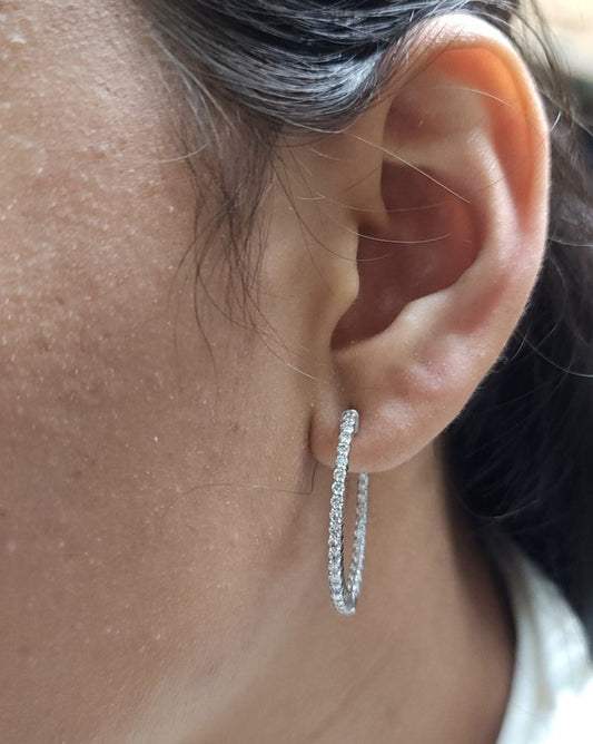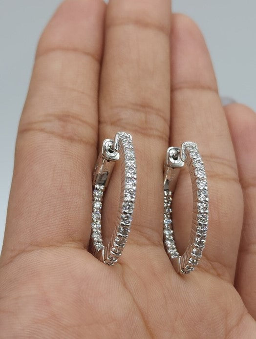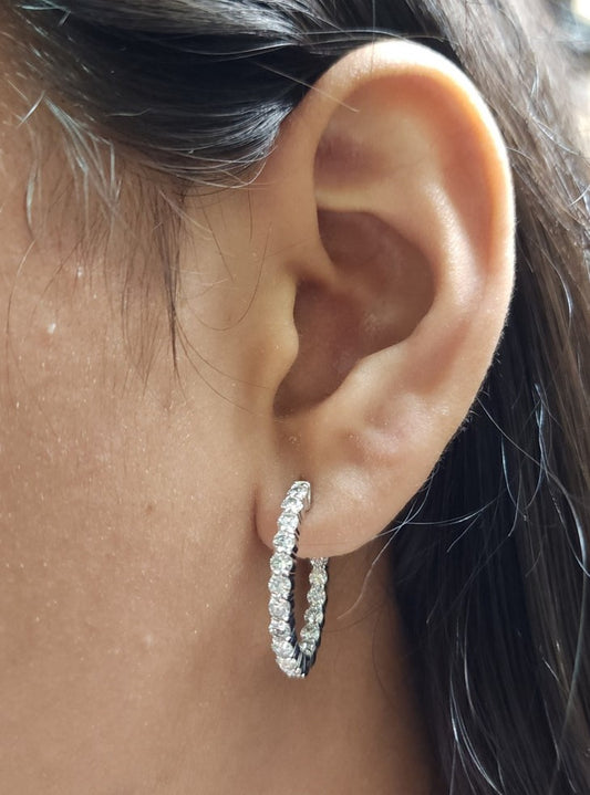 14Kt Gold 1.98 Ct Lab Grown Diamond Inside & Outside Huggie Hoop Earrings