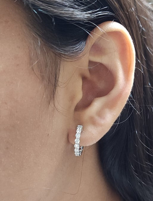 14Kt Gold 1.55 Ct Lab Grown Inside & Outside Diamond Huggie Hoop Earrings