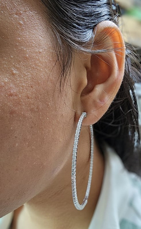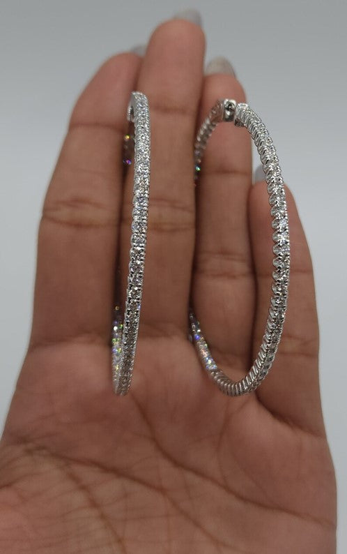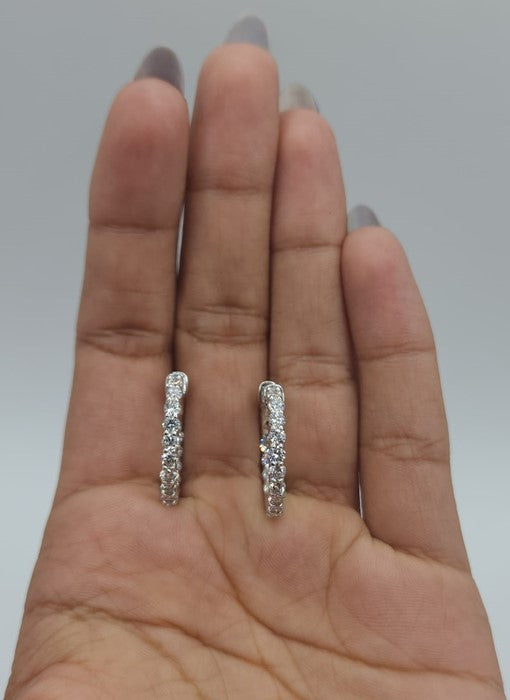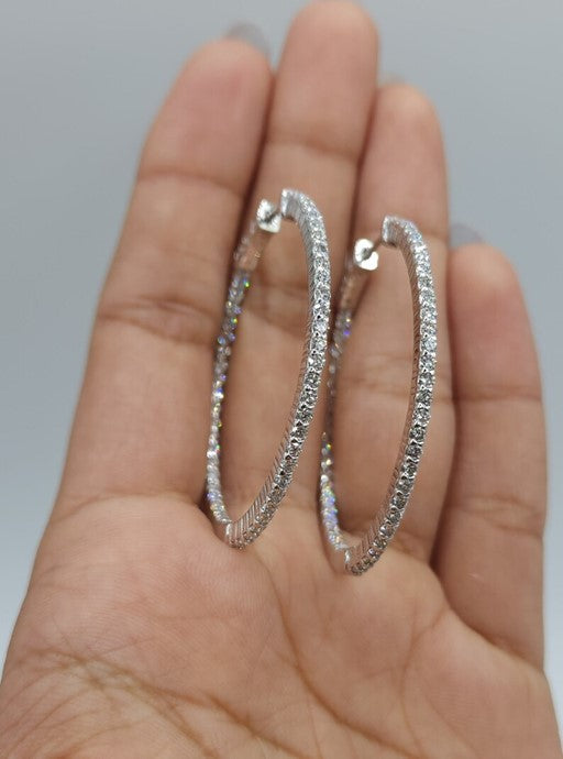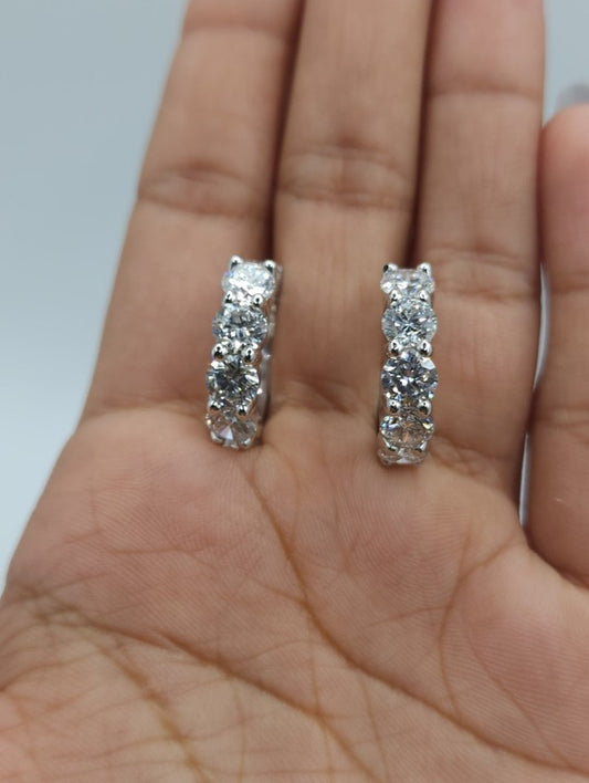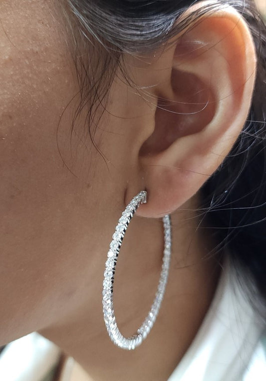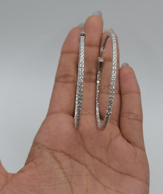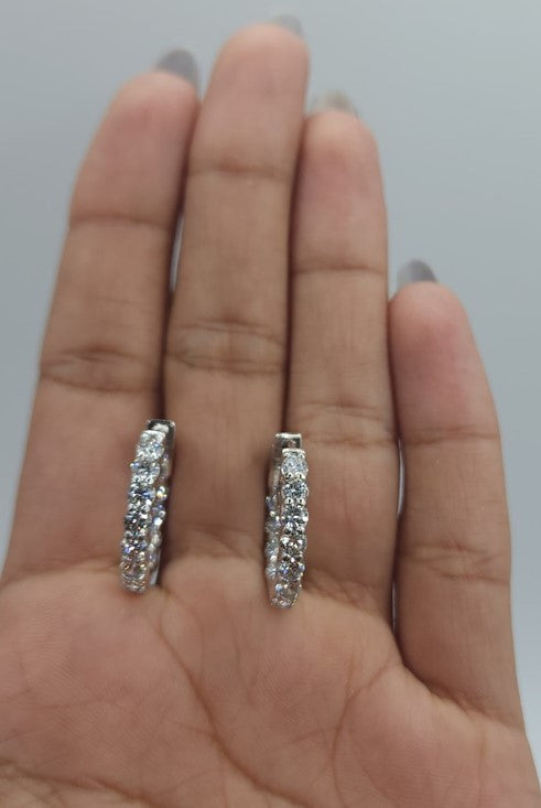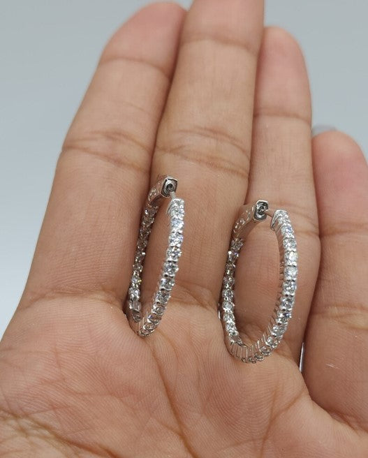 14Kt Gold 4.20 Ct Lab Grown Diamond Inside & Outside Huggie Hoop Earrings