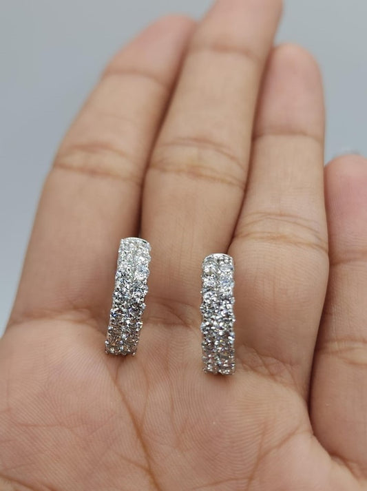 14Kt Gold 1.65 Ct 3 Row Lab Grown Diamond Huggie Hoop Earrings