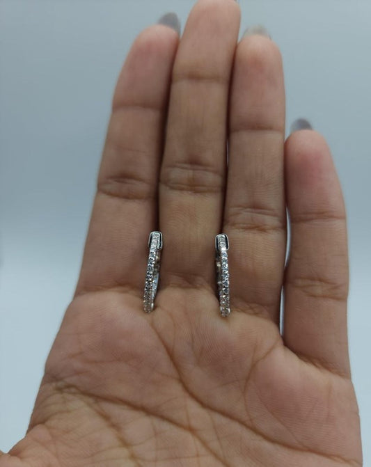 14Kt Gold 0.80 Ct Lab Grown Diamond Inside & Outside Huggie Hoop Earrings