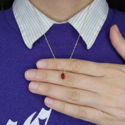 14Kt Gold Garnet Teardrop Pendant Necklace