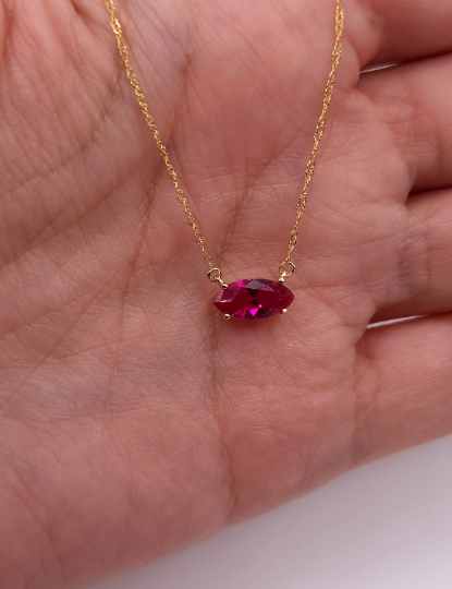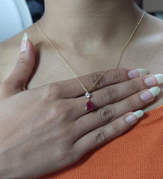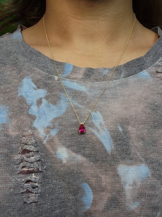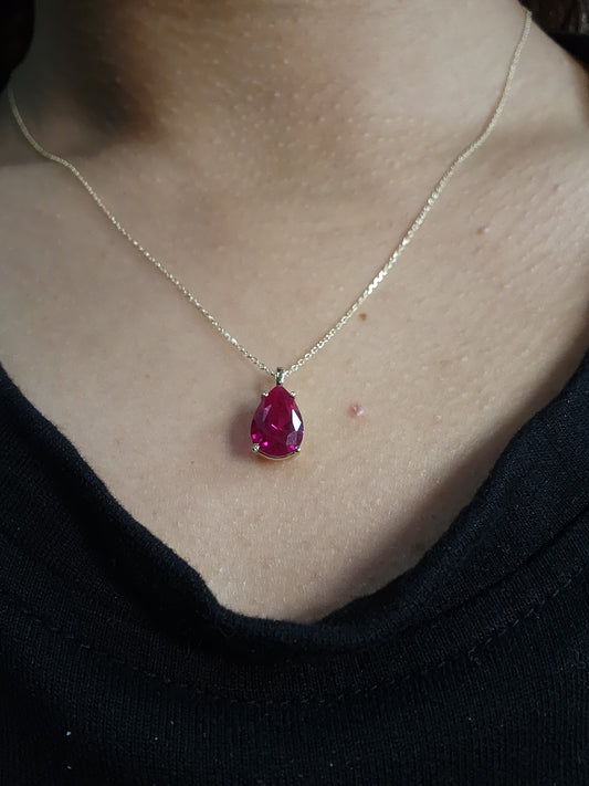 14Kt Gold Ruby Teardrop Pendant Necklace