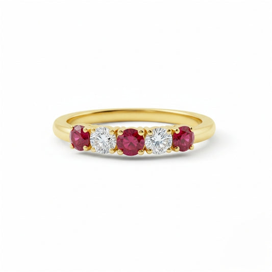 14Kt Gold 0.50 Ct 5 Stone Ruby & Lab Grown Diamond Ring