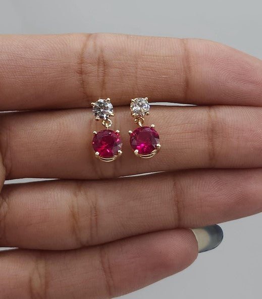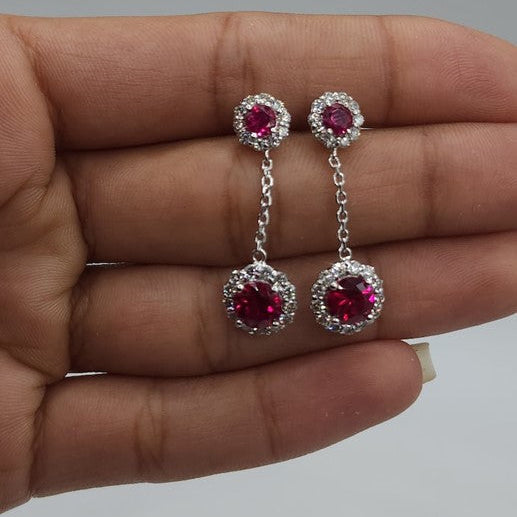 14Kt Gold 1.68 Ct Lab Grown Diamond & Ruby Halo Dangle Stud Earrings