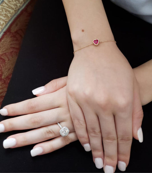 14Kt Gold Created Ruby & Diamond Devil Heart Bangle Bracelet